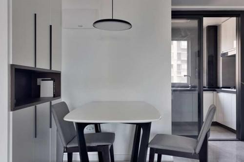 小户型餐厅常用的小方桌或折叠桌,上方低垂一盏吊灯就够用了。
