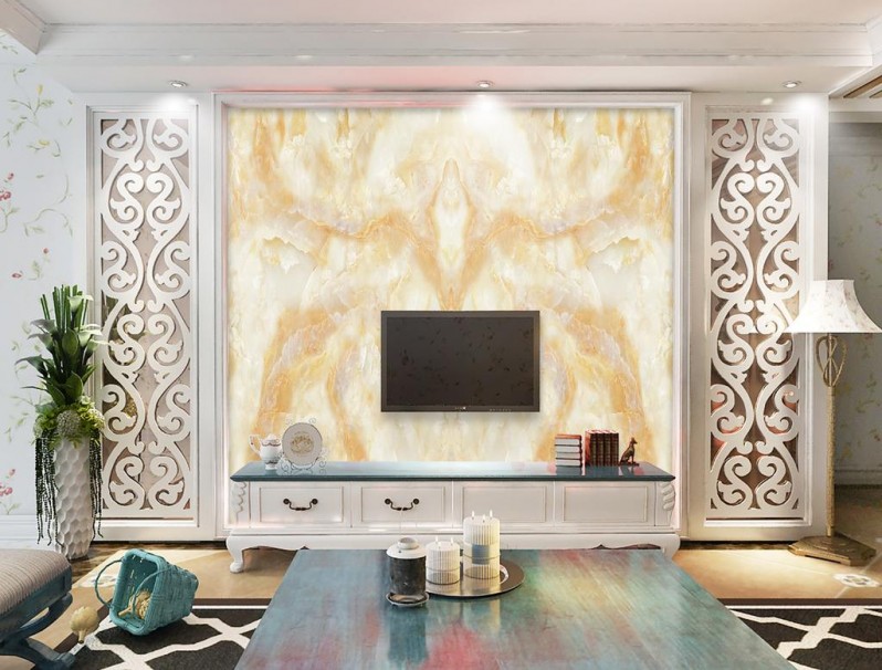 这几年,无论是墙纸还是壁布,加工工艺都有很大进步,不仅更加环保,还有遮盖力强的优点。用它们做电视背景墙,能起到很好的点缀效果,而且施工简单,如果你是个容易“喜新厌旧”的人,用墙纸,壁布做电视背景墙更换起来非常方便,由于品种繁多,它们价格差距很大,低的几元/平方米,高的几百元。