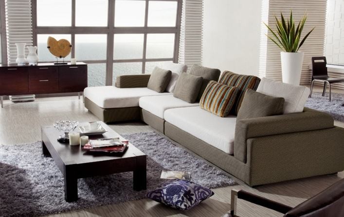 如果你是转角型沙发,可以将沙发沿墙壁转角摆放,形成一个互相交流的外敞式交流空间,比较适用于正方形客厅,建议再购买一个活动沙发,将客厅的交流空间丰满起来,增强功能性。转角沙发4人坐或5人坐的均可,它与两个单人沙发或是一个双人沙发围合成独立的会客区,可以同时供6个以上的人交谈,转角沙发的单人长榻沙发还可以供人轻松地躺在沙发上休息。