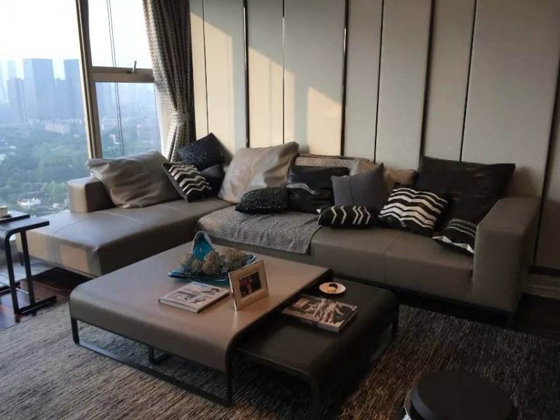 3人坐沙发与单人坐沙发的款式可以协调一致,也可完全不同。比如3人坐选择布艺沙发,而单人坐则为皮质沙发,或者单人沙发干脆摆放中式古典风格的木制椅。不过它们之间的距离不要过大,以免造成交谈时的不便。