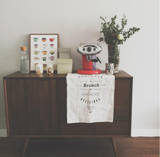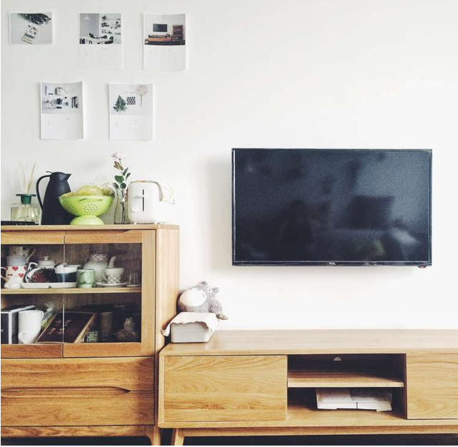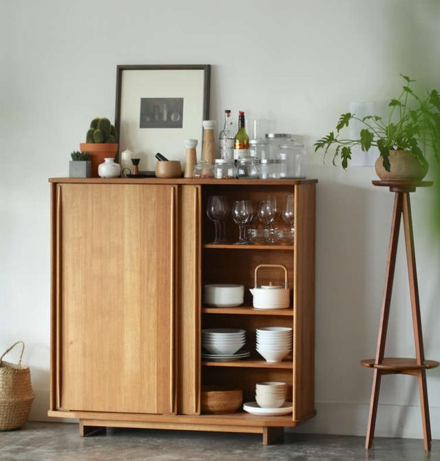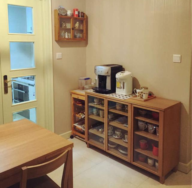 再也不用担心好看的碗盘杯子没地方展示了。把它们都整齐的摆放在餐边柜里吧。