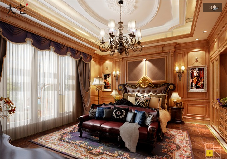 美式软装搭配的装饰偏向于突显特有的文化气息的艺术品,比如壁画等都是美式家具搭配的喜爱。美式风格的装修空间一般比较大,在大的环境中有一幅有特色的壁画能给人带来不一样的感觉。