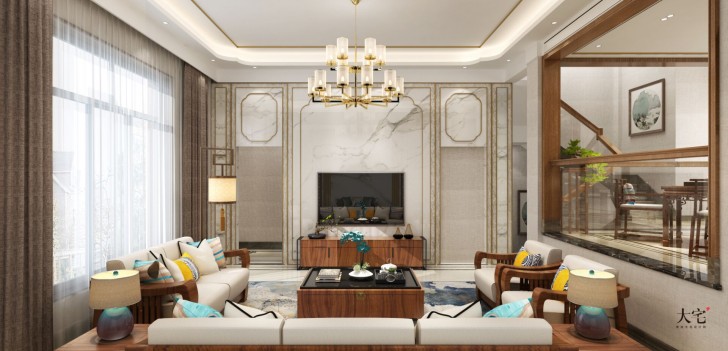 龙湖湘风原著260平方米简美风格案例效果图-客厅