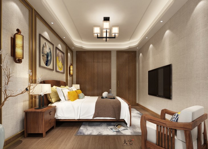 龙湖湘风原著260平方米简美风格案例效果图-卧室