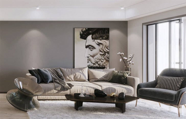 永宏万家里160㎡现代轻奢风格装修案例效果图-客厅