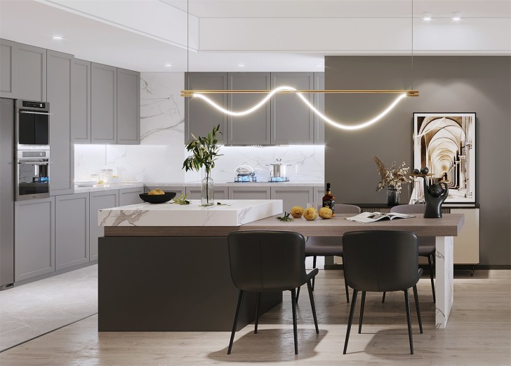永宏万家里160㎡现代轻奢风格装修案例效果图-餐厅