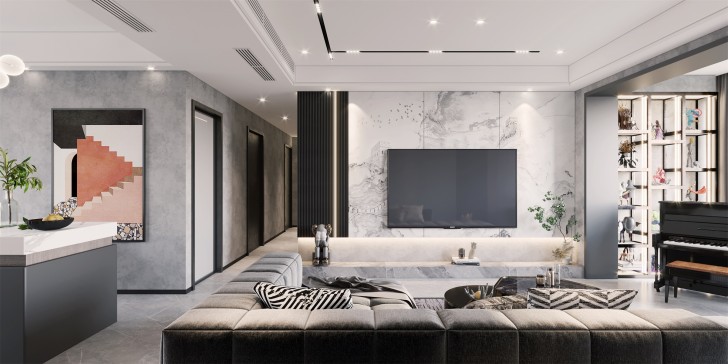 长沙保利国际广场130平现代极简风格-长沙装修公司美迪装饰