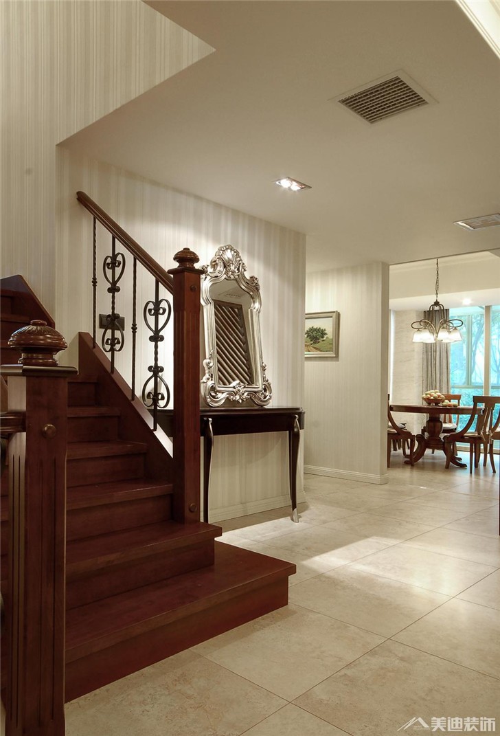 设计理念: 本案在处理上无论是对整体框架的把握还是细节的处理都彰显出设计的巧思。整体空间非常注重线条的处理,特别是客厅通透式的设计和餐厅镜面的使用,既确保了空间充足的采光,也带给住家浓郁的浪漫气息。本案各个空间区块虽功能分明,布置不同,当都融合为浑然天成的一体。