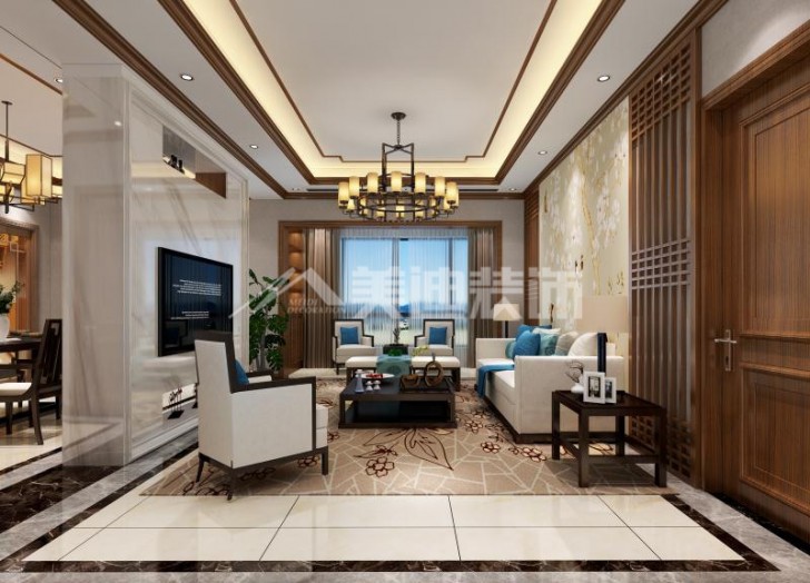 您的位置:美迪装饰 >家装案例 >北辰中央公园132平新中式风装修案例图