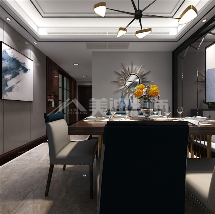 世贸铂翠湾133平简欧风装修案例图—餐厅